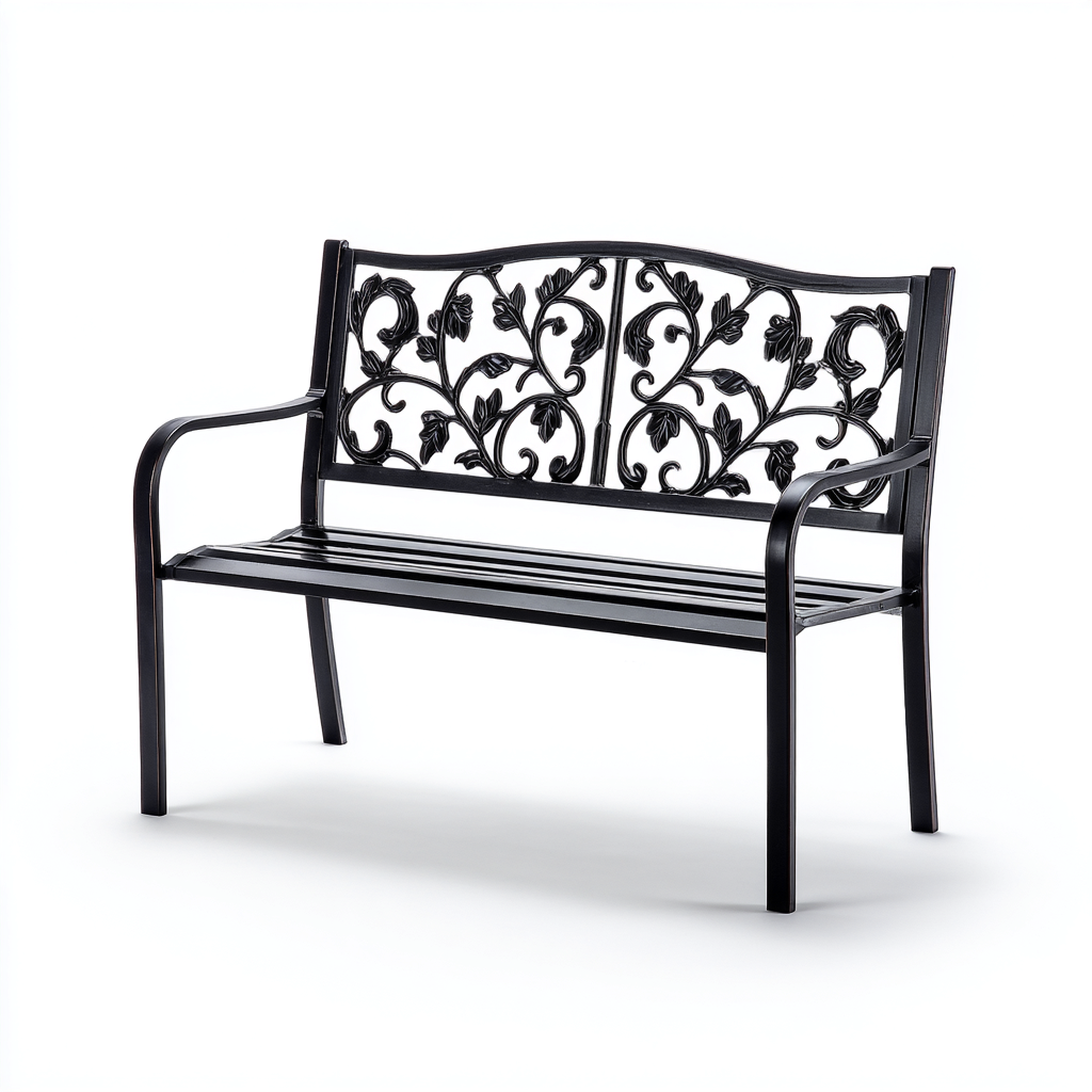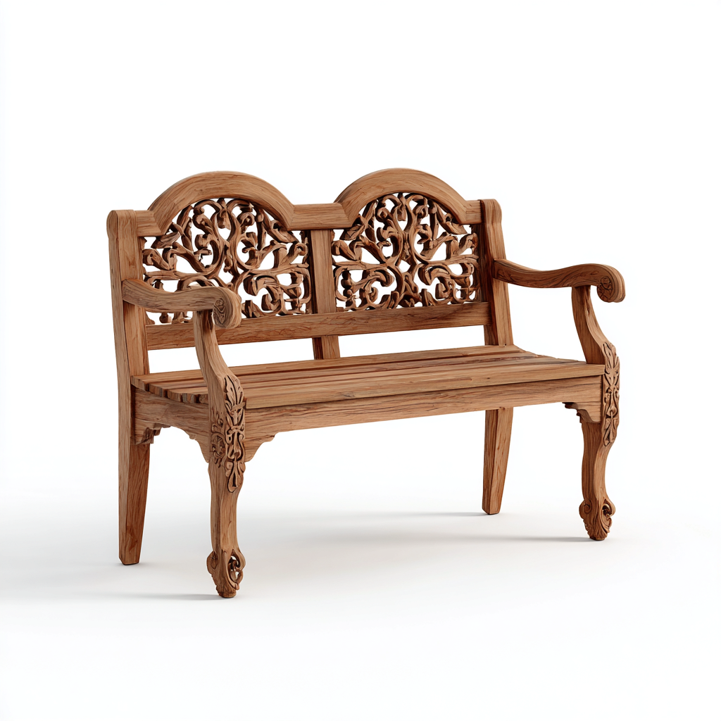 Banc de jardin bois massif sculpté 135x60x95 cm - bois naturel - usage extérieur - design classique