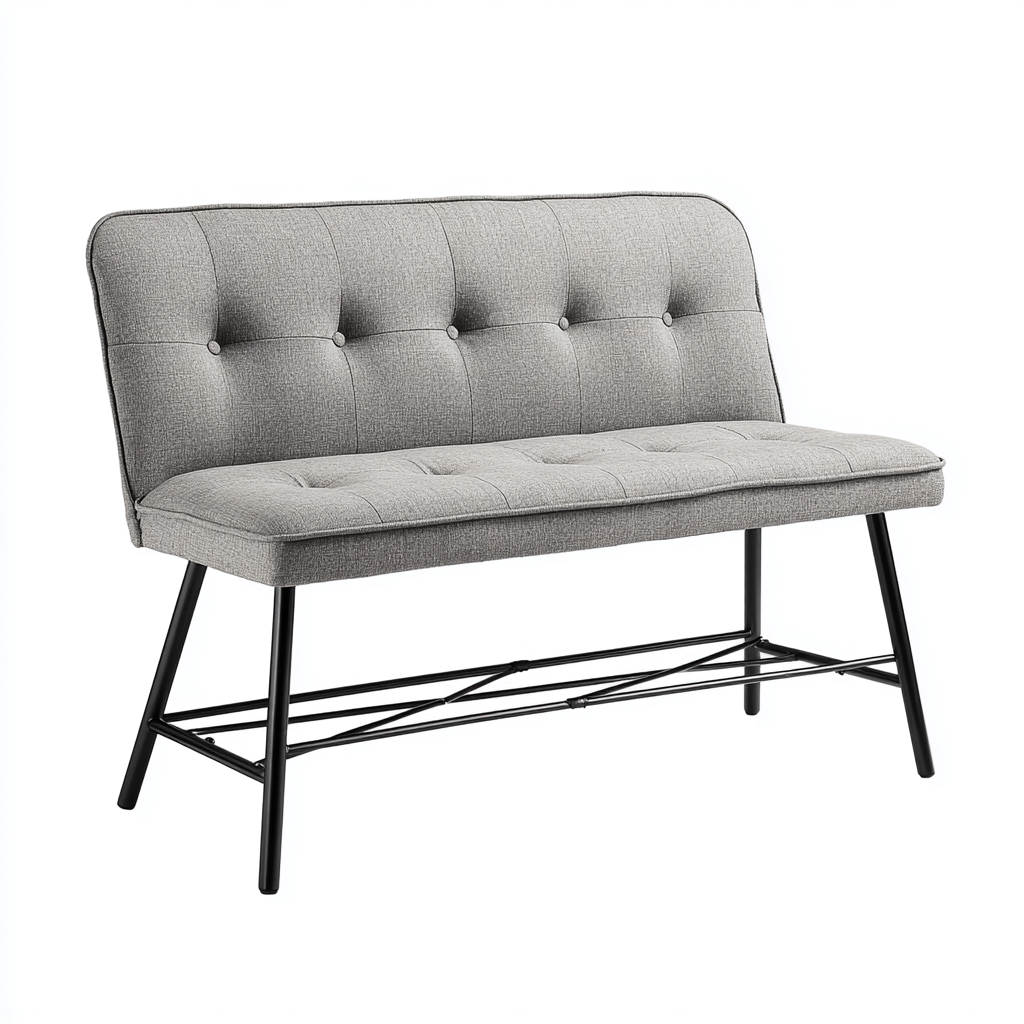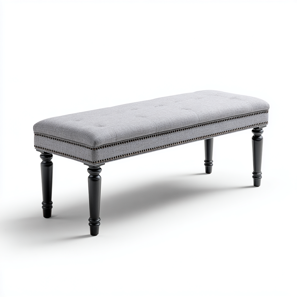 Banc de lit tissu 110x38x45 cm - gris - noir - adapté à la chambre - design moderne