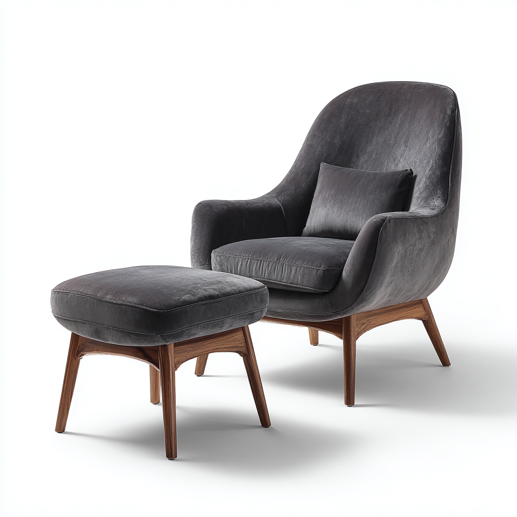 Fauteuil avec repose-pieds - tissu velours - 82x78x98 cm - gris foncé - adapté au salon - design moderne