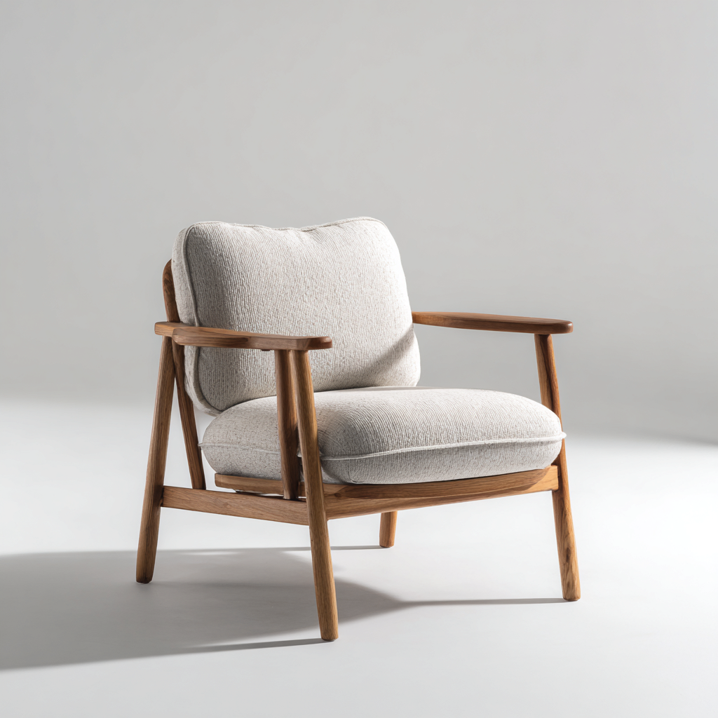 Fauteuil tissu+bois 78x75x88 cm - beige - bois naturel - style nordique adapté au salon