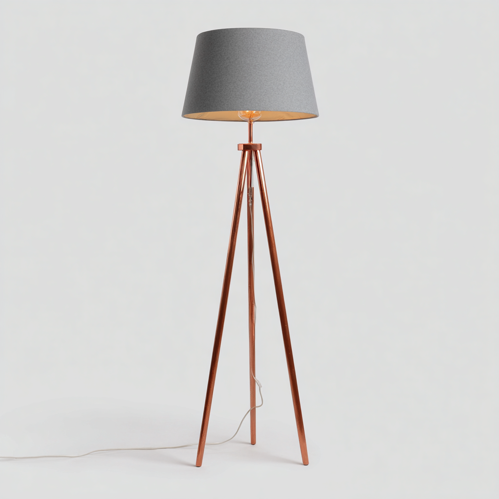 Lampadaire trépied métal et tissu 45x45x155 cm - cuivre - gris - pour salon style moderne