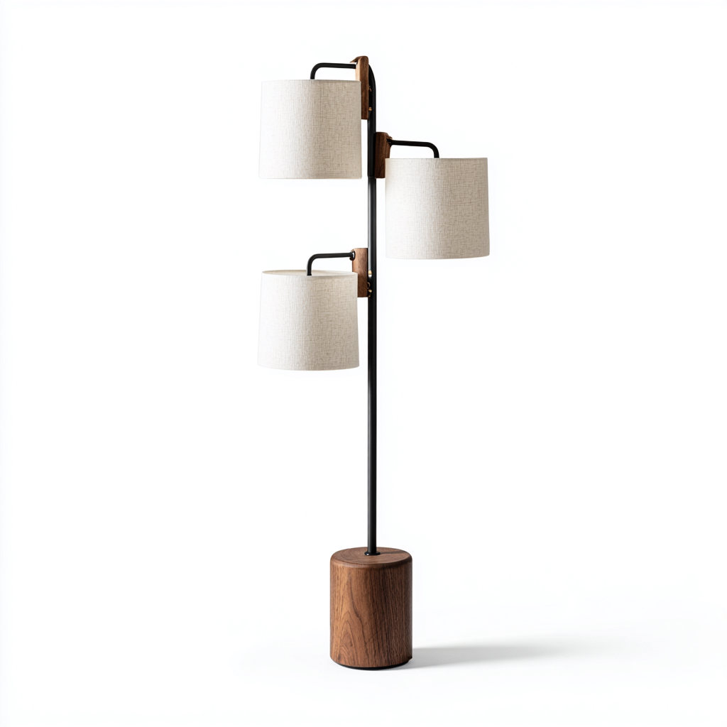 Lampadaire métal et bois 32x32x165 cm - noir - beige - adapté au salon - style moderne