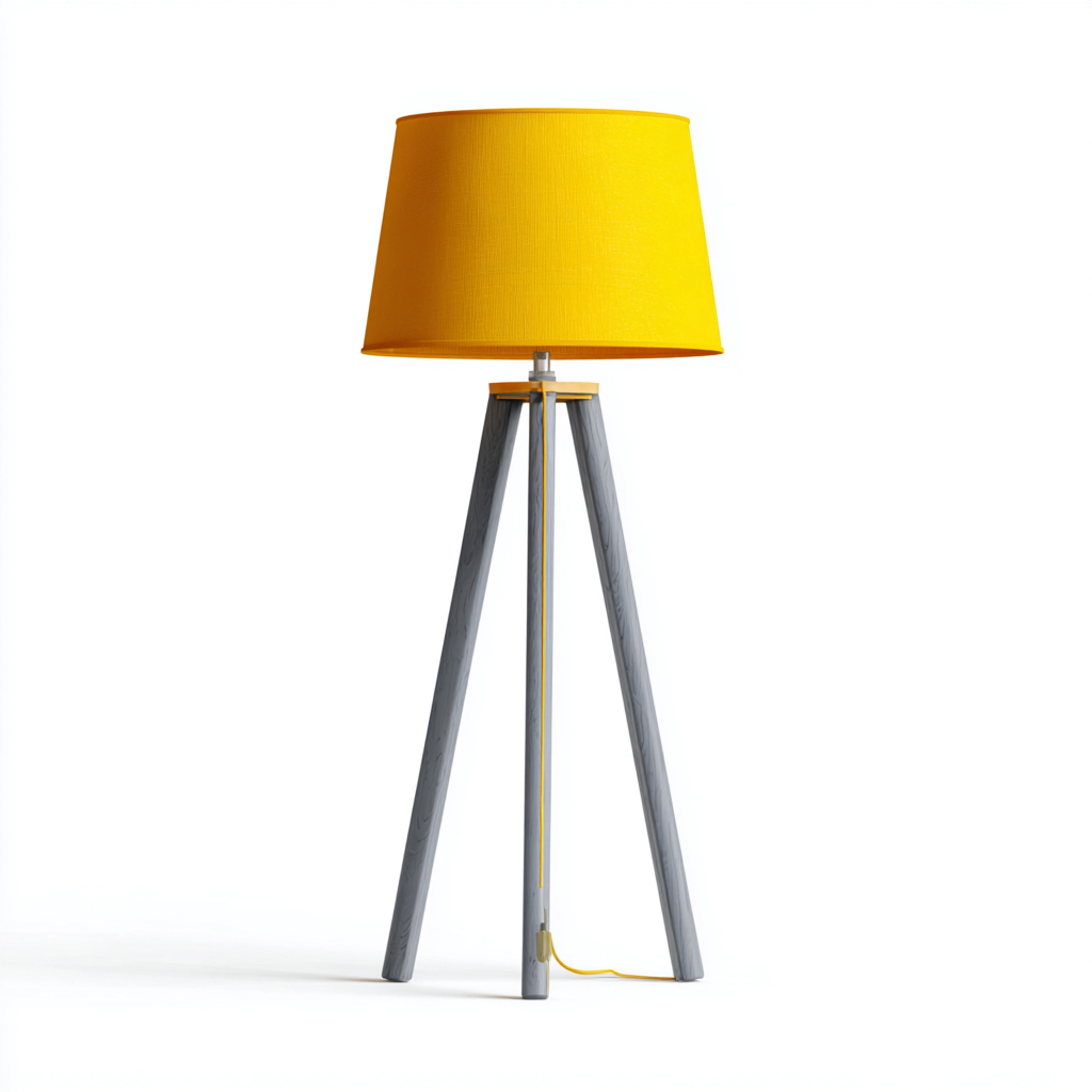 Lampadaire bois et tissu 45x45x150 cm - jaune - gris - adapté au salon - style moderne
