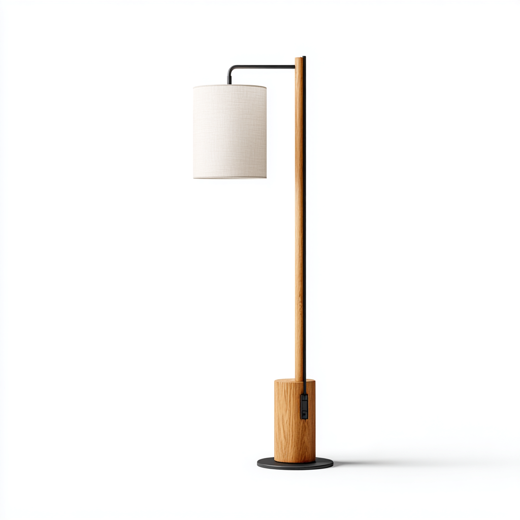 Lampadaire bois et métal avec abat-jour cylindrique 32x32x160 cm - chêne - noir - blanc - pour salon et chambre style moderne