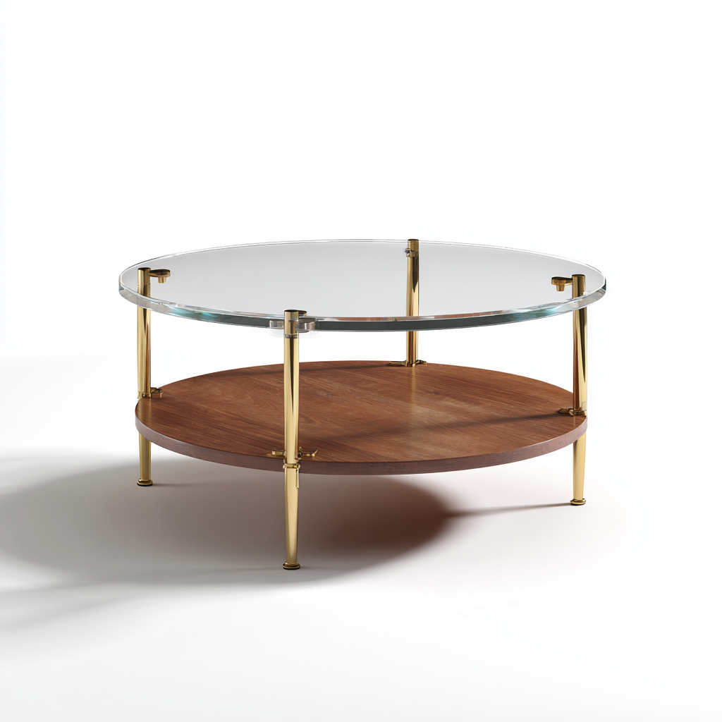 Table basse verre métal et bois 85x85x45 cm - transparent - or - marron - design moderne pour salon
