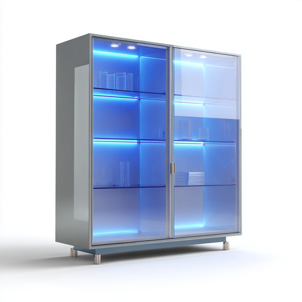 Vitrine métal et verre avec éclairage LED 120x40x190 cm - gris clair - pour cuisine - design moderne