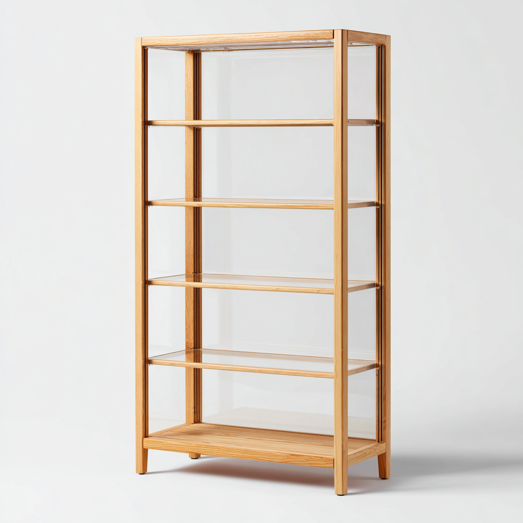 Vitrine bois et verre 80x35x180 cm - structure en bois clair - étagères en verre - design moderne - adaptée à la cuisine