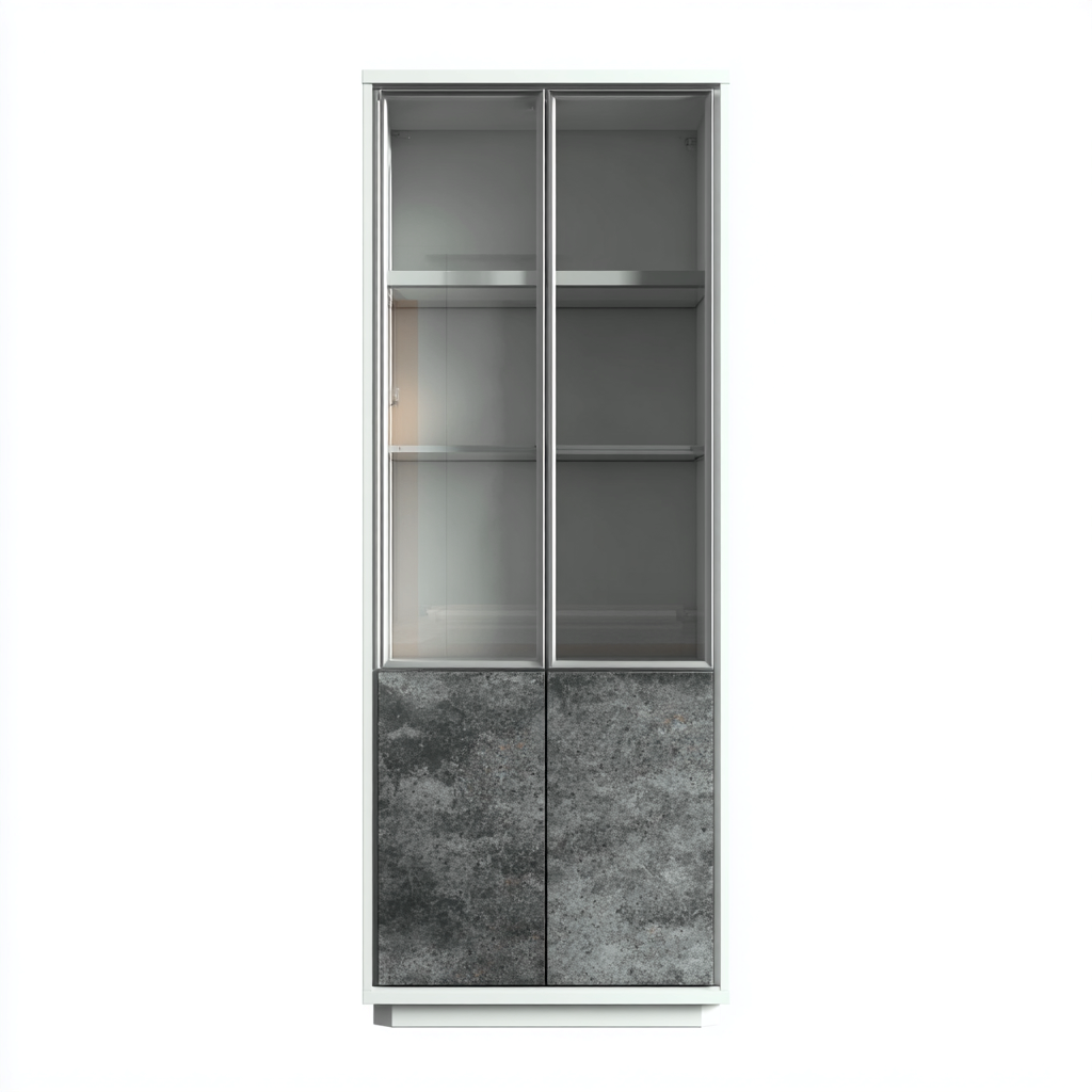 Vitrine métal et verre 92x41x186 cm - gris - effet pierre - pour cuisine - design moderne
