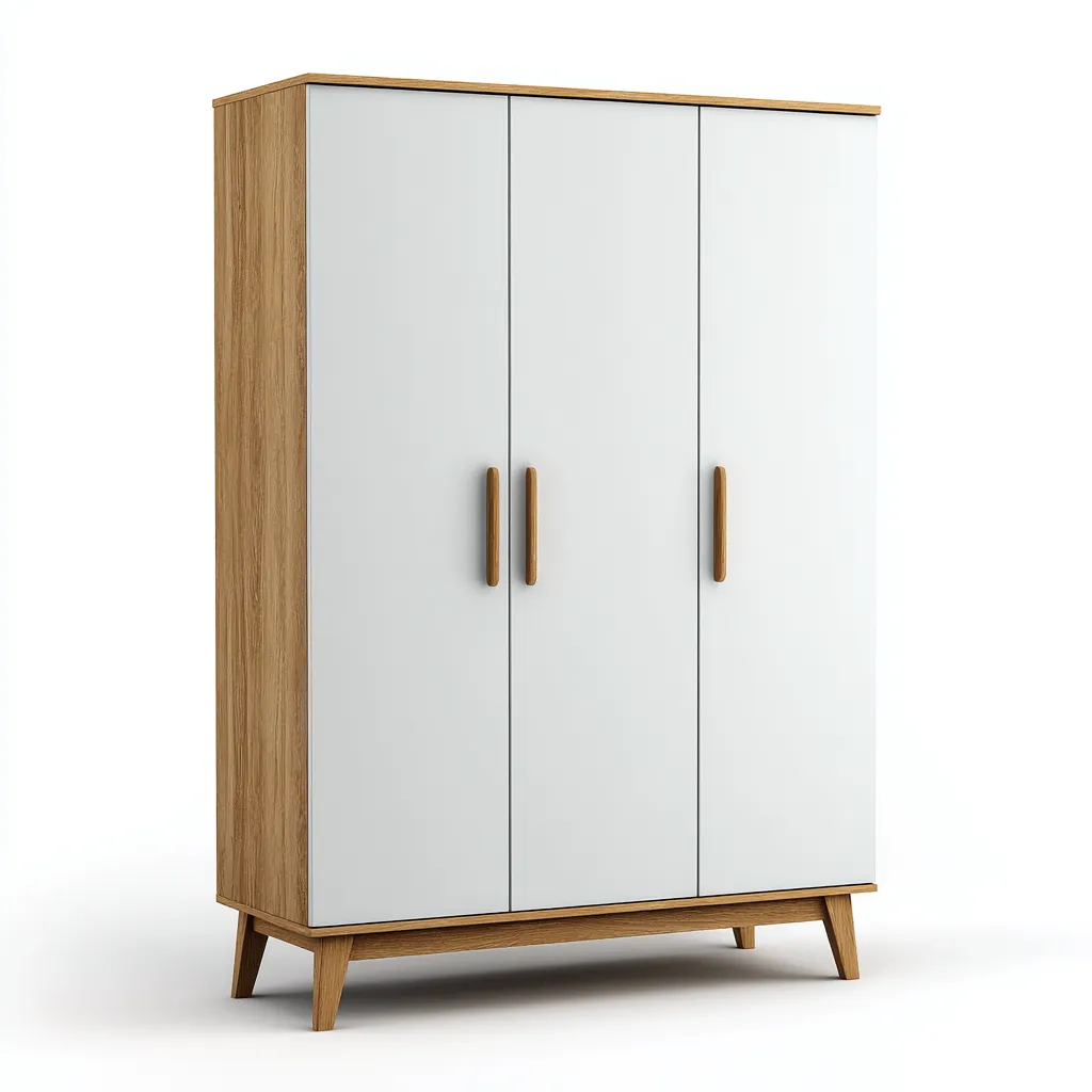Cette armoire à trois portes offre une solution de rangement élégante et fonctionnelle pour une chambre moderne. Son style scandinave, caractérisé par des lignes simples et une finition douce, s'intègre aisément dans différents intérieurs.
