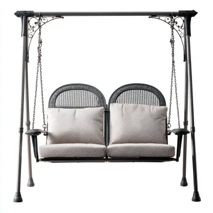 Le siège confortable équipé de coussins doux permet une assise agréable. Les chaînes de suspension assurent un balancement fluide et stable, tandis que les éléments décoratifs en métal apportent une touche élégante.