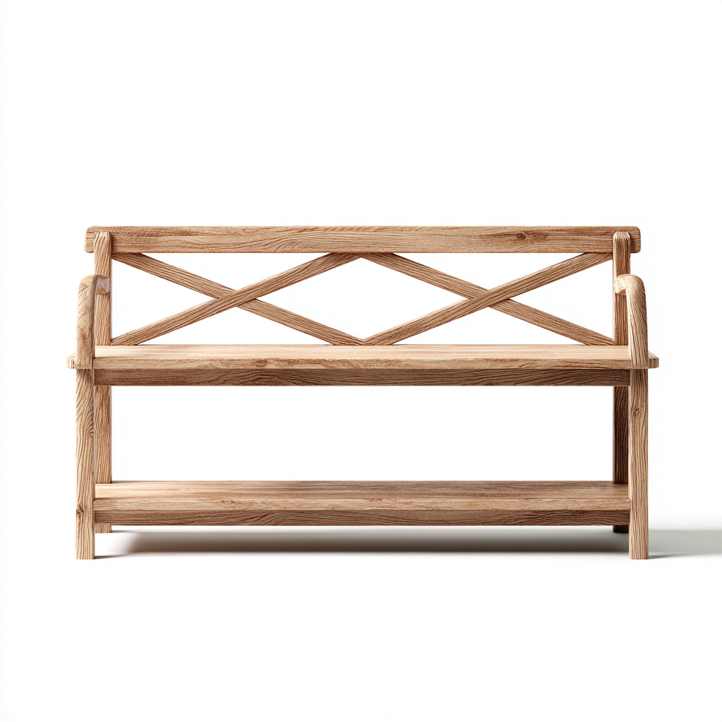 Fabriqué en bois naturel, le banc présente une finition soignée mettant en valeur les veines du matériau. Le dossier en croix apporte une touche décorative tout en assurant un bon maintien.