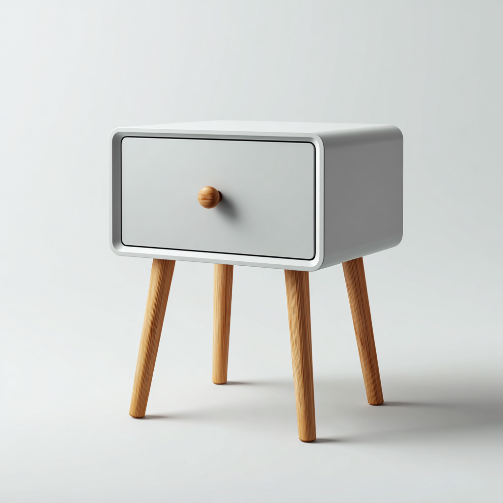 Cette commode compacte au design scandinave associe un caisson blanc épuré à des pieds en bois naturel. Elle convient parfaitement comme meuble d'appoint ou table de chevet dans une chambre ou un espace de vie.