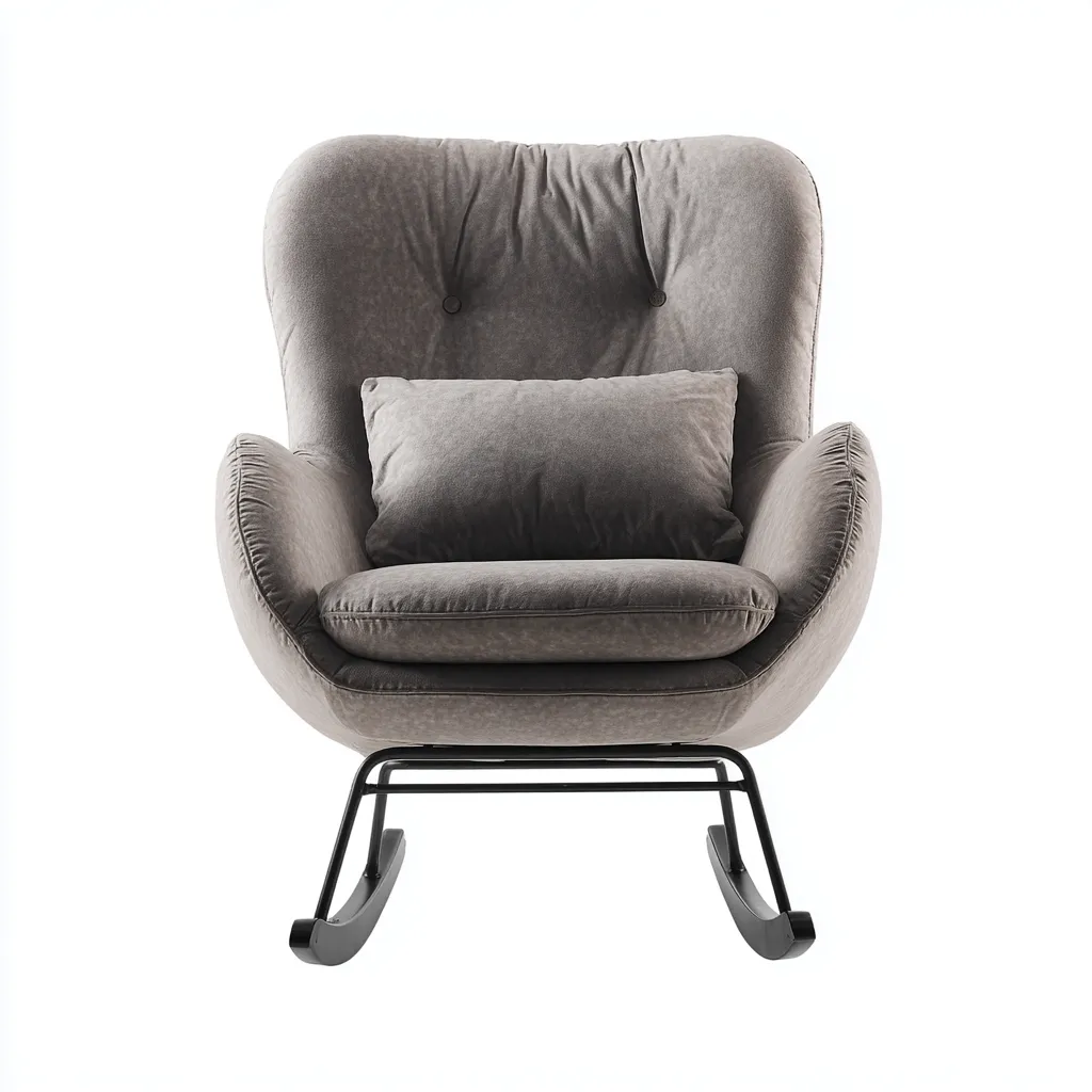 La structure métallique assure une durabilité optimale, tandis que le revêtement en tissu velours procure une sensation douce et agréable. Les patins incurvés permettent un mouvement de balancement stable et fluide.