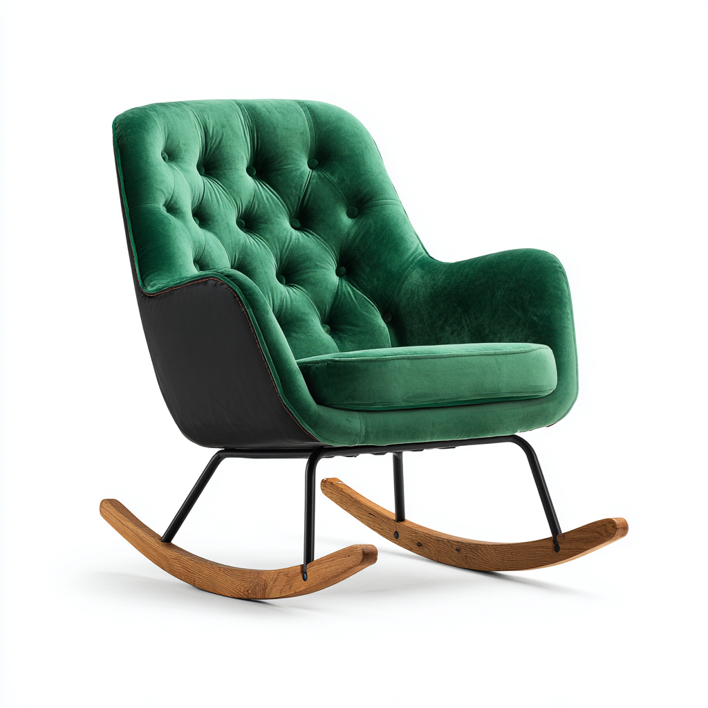 Ce fauteuil à bascule en velours vert se distingue par son style moderne et élégant, offrant une assise confortable et enveloppante. Sa conception est idéale pour un usage au salon, apportant une touche chaleureuse et décorative.