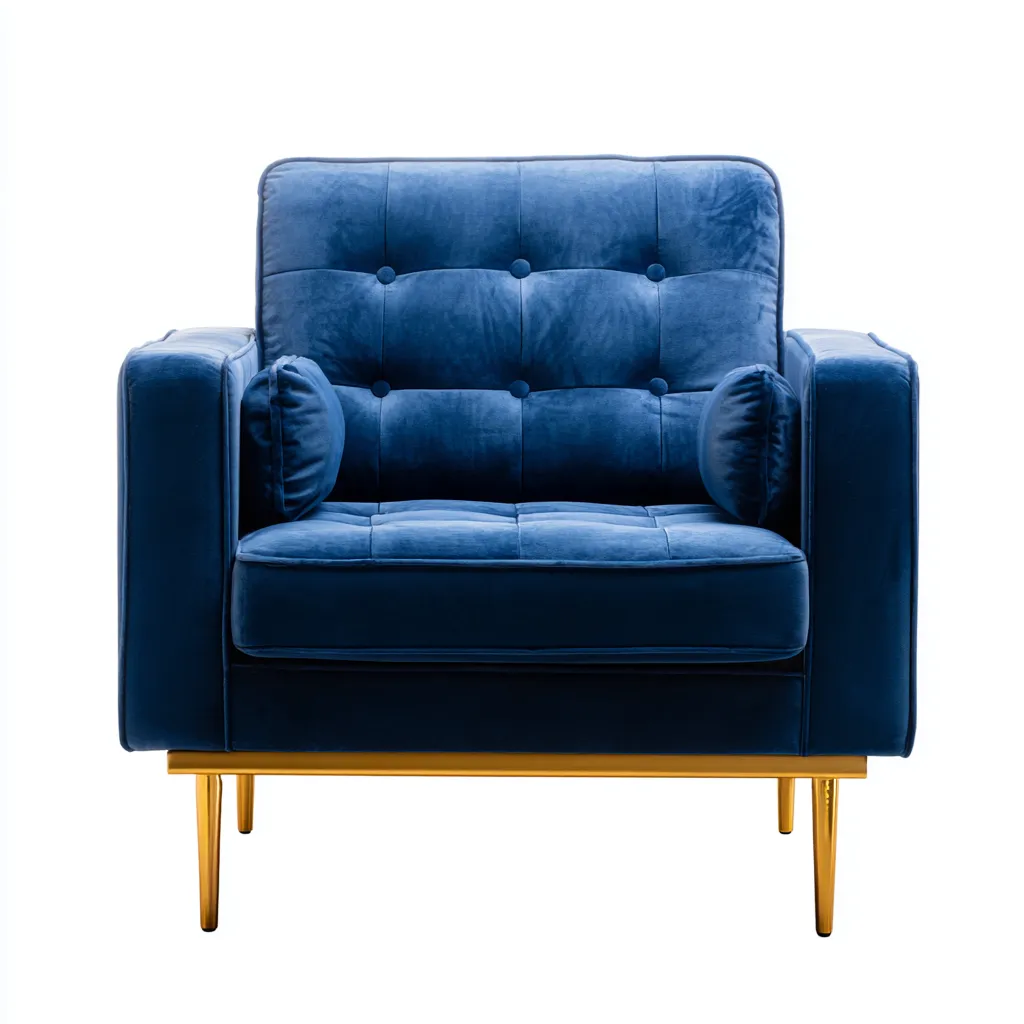 Fauteuil velours+métal 82x78x90 cm - bleu foncé - or - style moderne adapté au salon