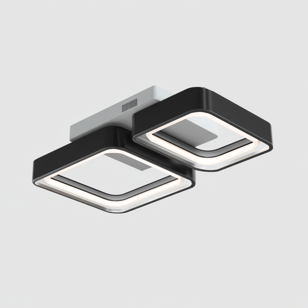 Ce plafonnier LED moderne présente une structure rectangulaire à double cadre, combinant une finition noire et blanche pour offrir une apparence épurée et un éclairage uniforme adapté au salon ou à divers espaces intérieurs.