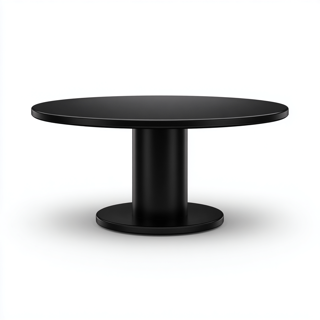 La forme ronde permet une circulation fluide autour de la table et facilite la disposition des convives. Le pied central libère l'espace sous la table, améliorant le confort d'utilisation.